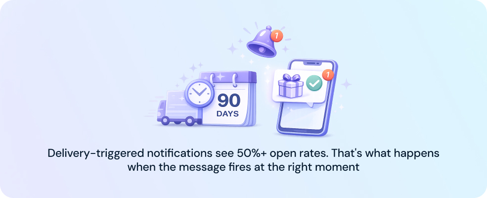 Giftnote fires delivery-triggered notifications at the moment of the carrier delivery scan, across 1,200+ carriers. It creates a Klaviyo profile for the gift recipient and routes them into the merchant's existing flows.